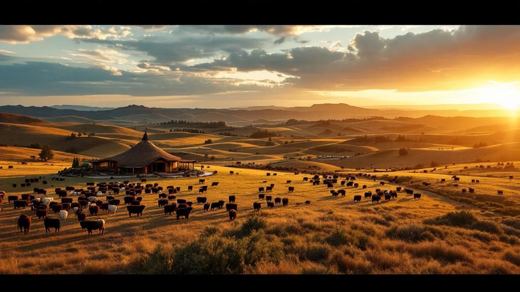- Features working cattle ranch with extensive animal herds
